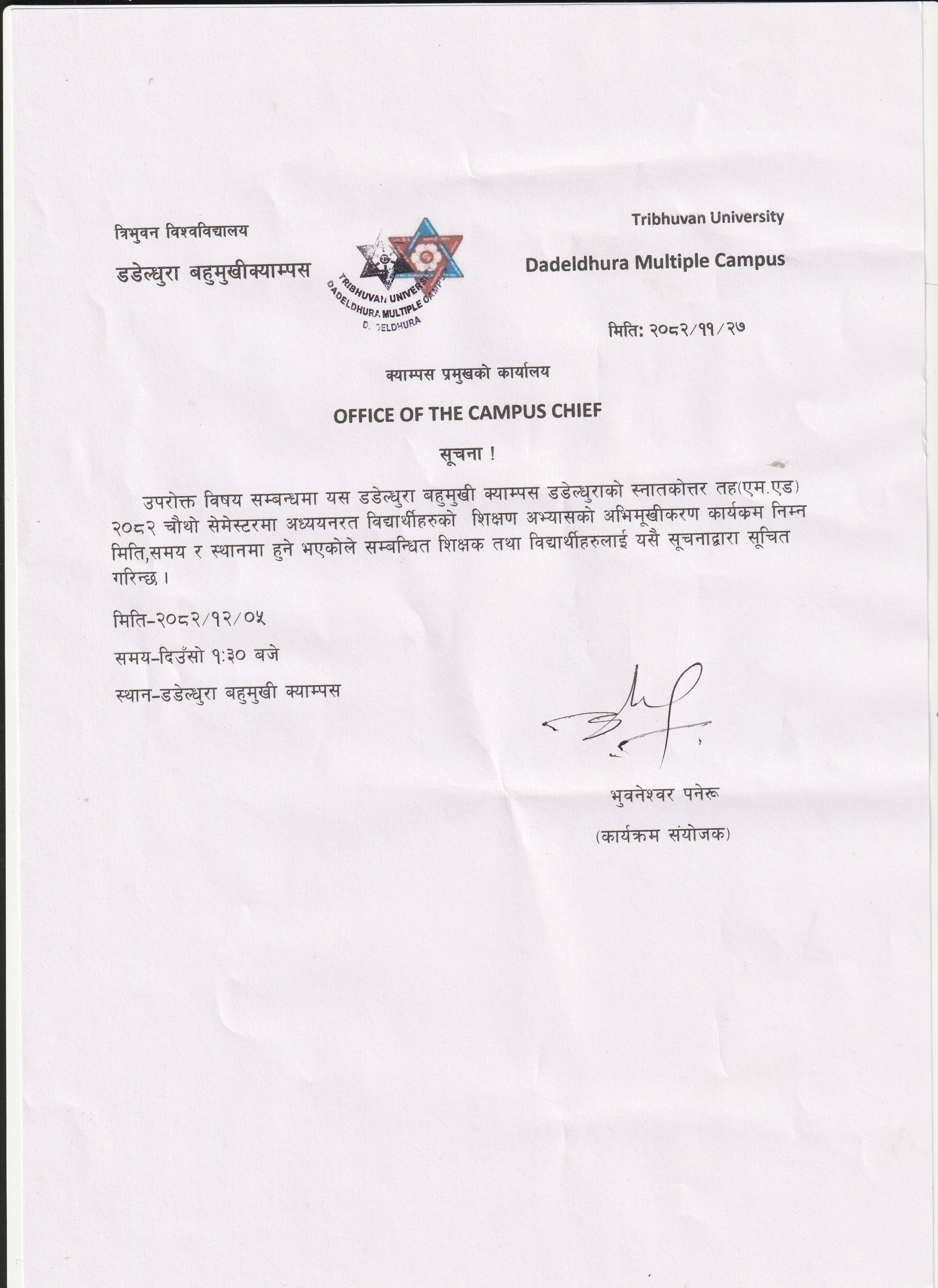 We have started one year B.Ed in 2052, Three year B.Ed in 2057, M.Ed in 2064, ICT B.Ed in 2066 ,M.A , B.A & BBS in 2072 B.S.