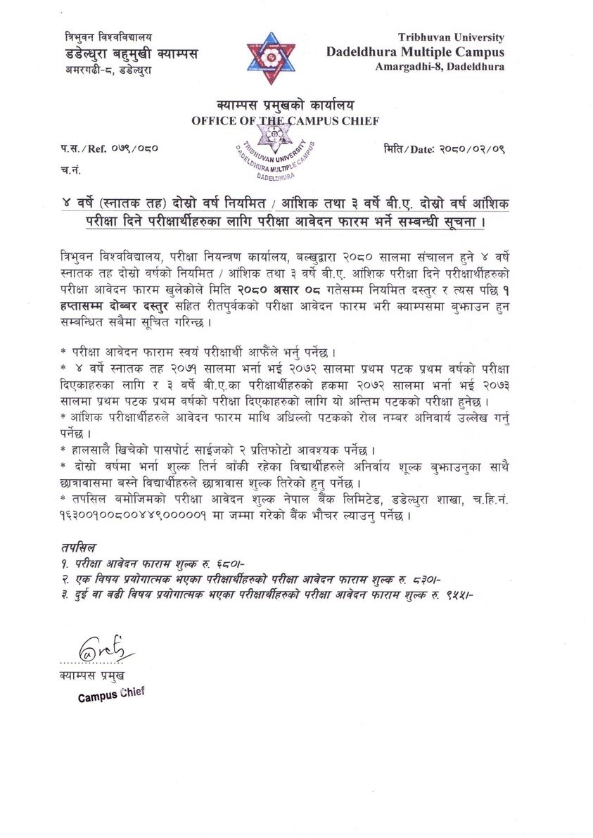 4 Years Bachelor. 2nd Year (Regular & Partial )& 3 Years BA 2nd Year (Partial) Exam Fome notice
