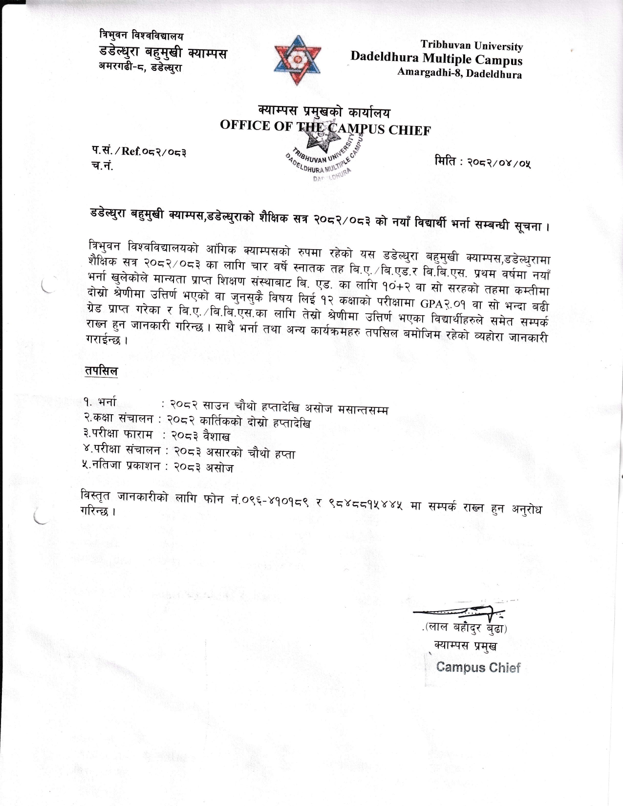 स्नातक तह शैक्षिक वर्ष २०८२/०८३ प्रथम वर्षको नयाँ भर्ना सम्बन्धी सूचना |