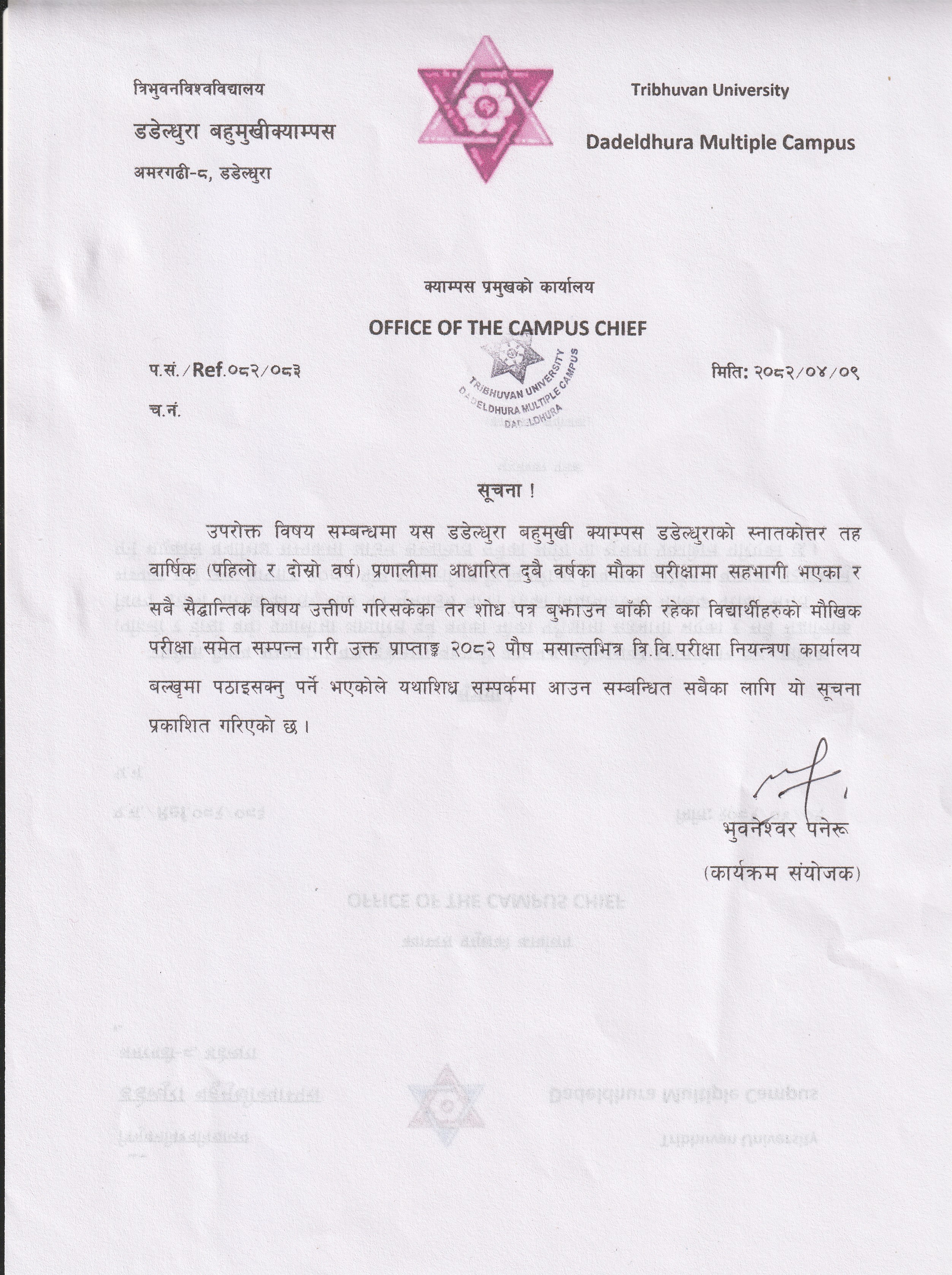 स्नातकोत्तर तह प्रथम सेमेष्टरमा भर्ना सम्बन्धी सुच...